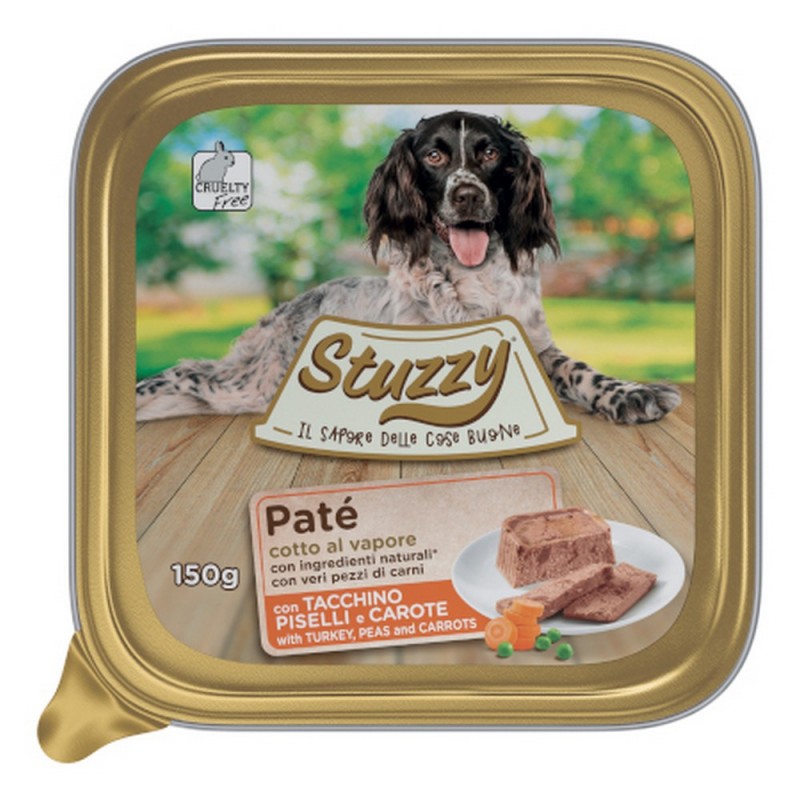 Vaschetta Stuzzy Dog Patè con Tacchino Piselli e Carote Cotto a Vapore 150 Gr