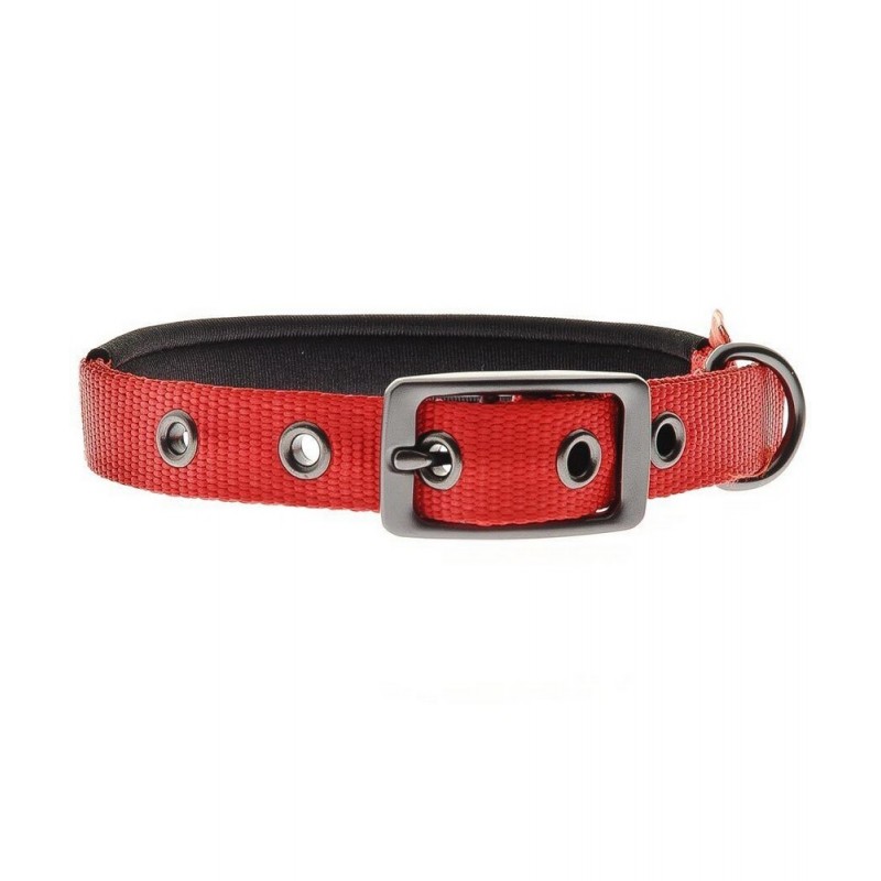 Collare in nylon con imbottitura interna studiato per essere estremamente confortevole sul collo del vostro amico grazie alla sua imbottitura morbida. Il collare in nylon ha un sistema di regolazione a quattro fori con fibbia in acciaio brunito. Realizzato con materie prime di massima qualità, robusto nylon, anelli in acciaio di rinforzo su tutti gli i fori del collare.