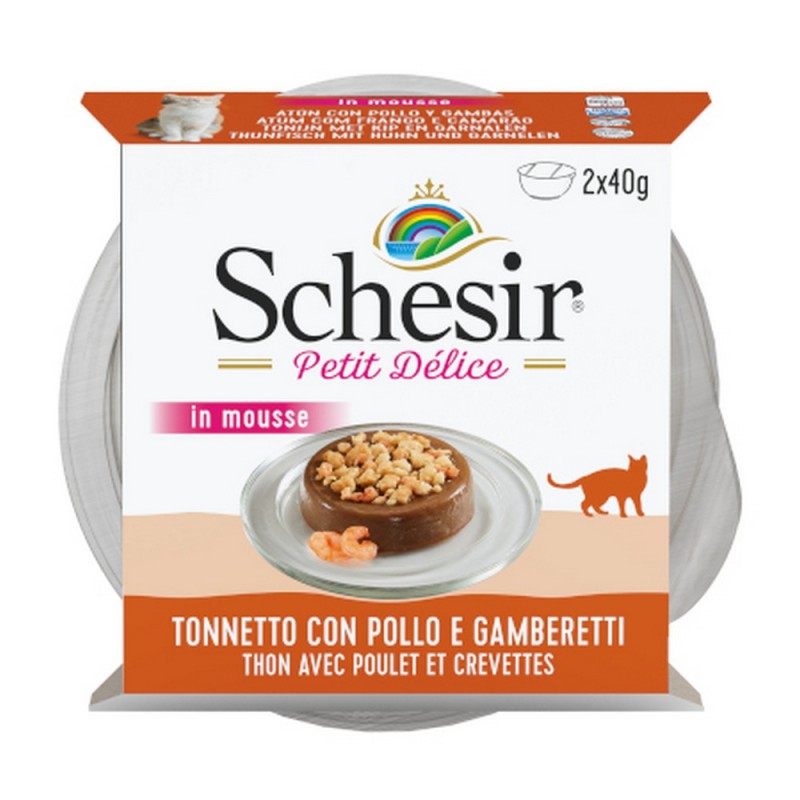 Schesir Mousse Petit Dèlice Tonnetto con Pollo e Gamberetti 2 x 40 Gr