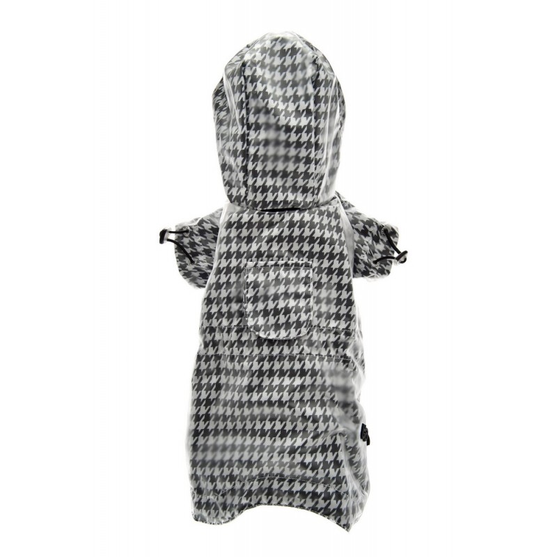 Un velo di materiale morbido e impermeabile ricopre l’interno in fresco tessuto creando un gioco di trasparenze: un impermeabile leggero e funzionale.
