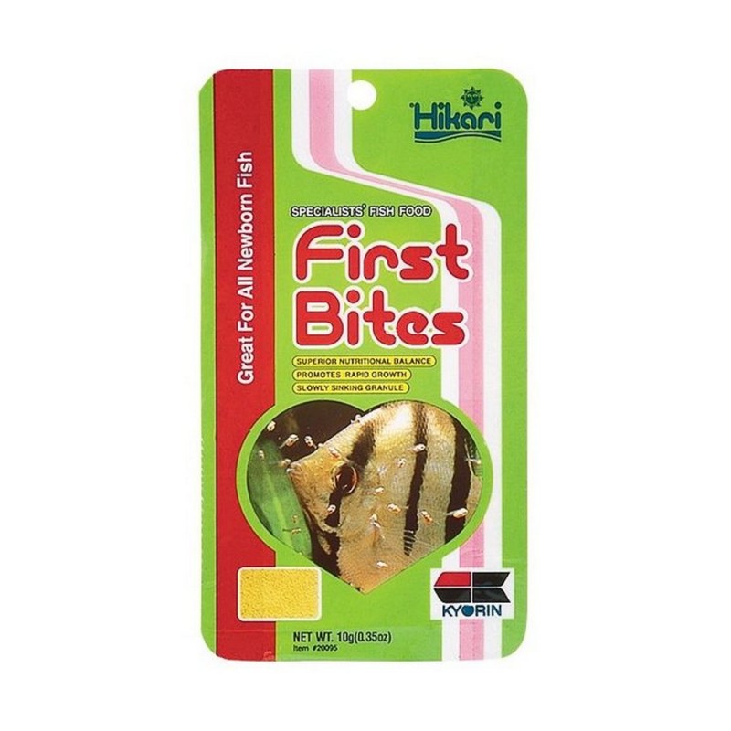 Mangime speciale per pesci appena nati. È un alimento molto nutriente e contiene tutte le vitamine e i minerali necessari. Garantisce una rapida crescita senza distorsioni e aumenta la resistenza. Hikari First Bites è semi galleggiante e quindi facile da dosare per evitare troppo spreco.