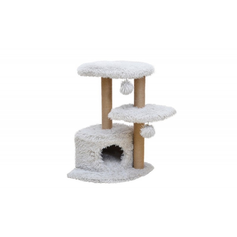 Comodissimo per dormire, con colonne rivestite in juta e morbidi giochini appesi per un passatempo infinito.