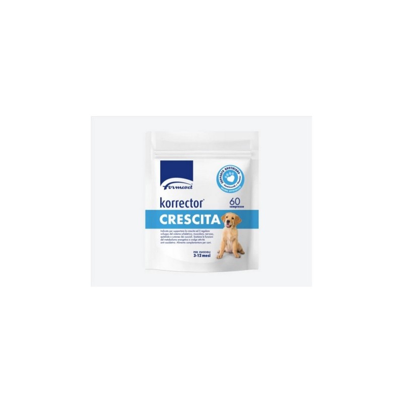 Korrector CRESCITA compresse è indicato per supportare la crescita ed il regolare sviluppo del sistema scheletrico, muscolare, nervoso, epiteliale e cutaneo dei cuccioli. Sostiene le funzioni del metabolismo energetico e svolge attività anti-ossidativa.