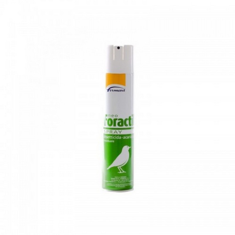 Antiparassitario spray uccelli Formevet Neo Foractil, ideale contro acari, pidocchi e pulci, si spruzza direttamente sugli uccelli da gabbia e da voliera.
