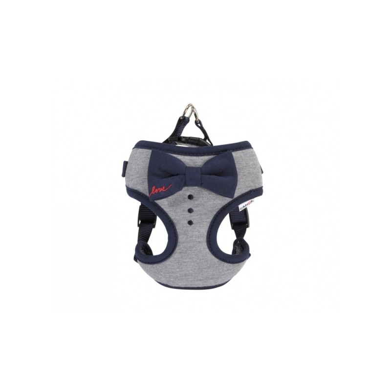 Graziosa e comoda pettorina caratterizzata dalla colorazione grigia e dagli inserti blu ed impreziosita dal fiocco con scritta “Love” e dai 3 simpatici bottoncini applicati.