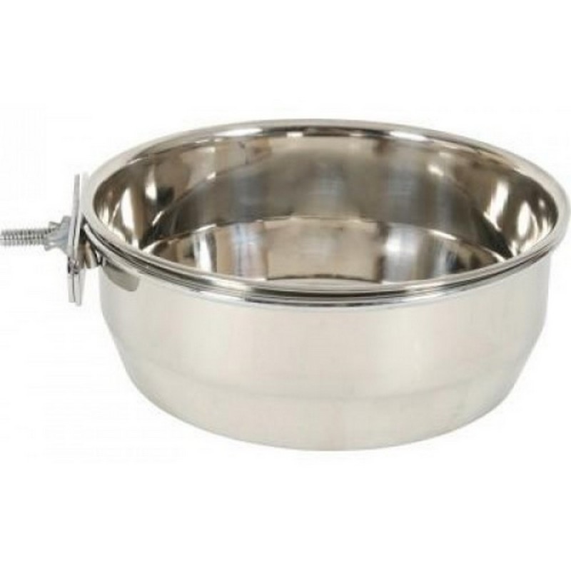 Ciotola in acciaio inox con supporto per fissare la ciotola su una parete, in un trasportino o su un grigliato.