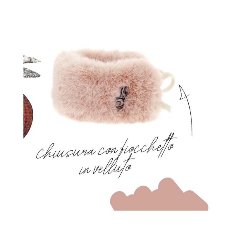 Il foulard di Cipria è realizzato in pelliccia sintetica, con chiusura a fiocco in velluto in tinta.