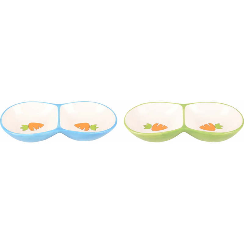 Simpatica e resistente ciotola in ceramica per criceti con doppio scomperto con disegno di carote.
