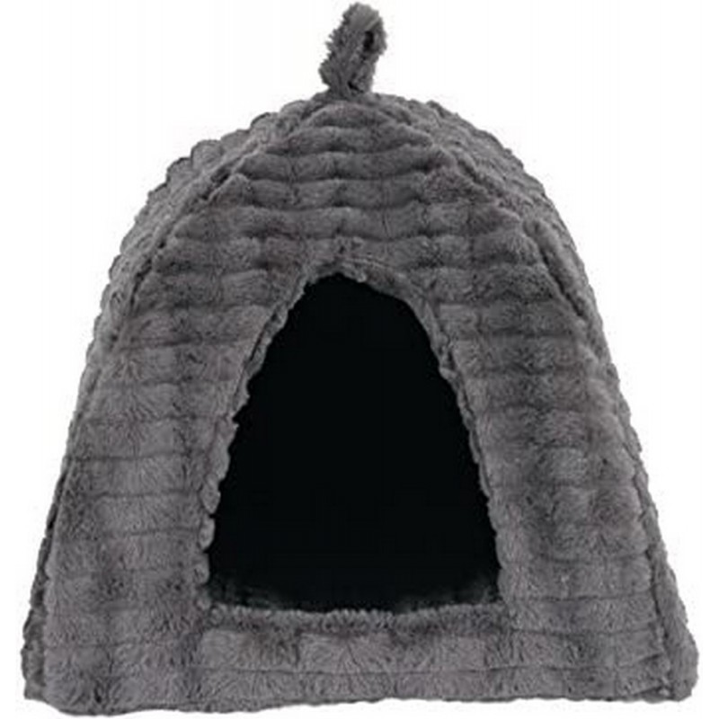 Cuccia per gatti a forma di Igloo composto da morbido peluche di colore grigio. Ha un morbido cuscino estraibile, sarà una tana perfetta per i gatti che amano nascondersi e dormire tranquilli.