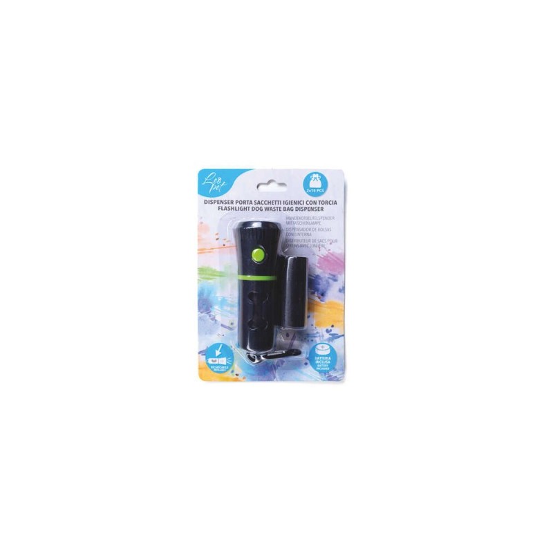 Dispencer Porta Sacchetti Igienici con Torcia Ricaricabile e due sacchetti Inclusi Leopet Colori Assortiti
