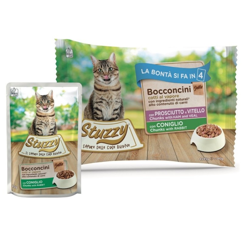 Stuzzy Bocconcini Cotti a Vapore 4 x 85 gr Prosciutto e Vitello e Coniglio per Gatti Adulti