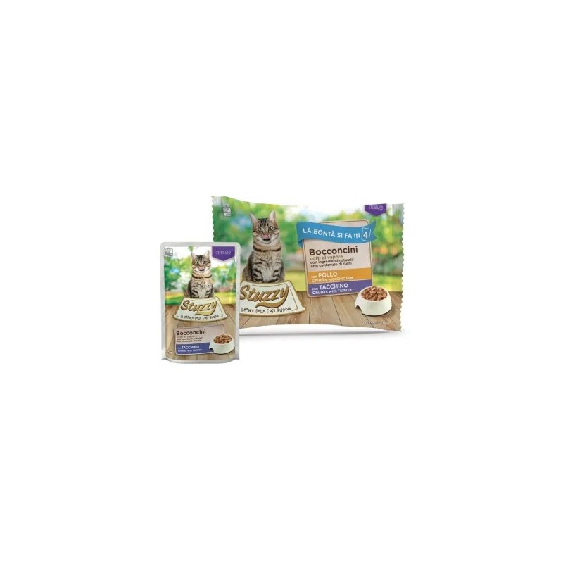 Stuzzy Bocconcini Cotti a Vapore 4 x 85 gr Sterilized Pollo e Tacchino per gatti Sterilizzati