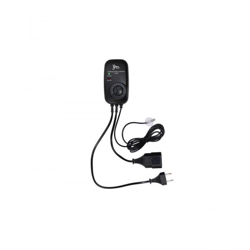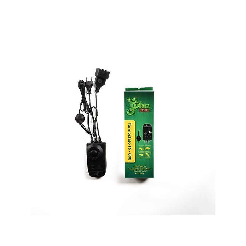 Termostato elettronico max 500w di carico, sensibilità +/-1°C, regolabile da 22° a 34°C, sonda di temperatura per aria o acqua di lunghezza 1 mt, spia corrente di rete, spia di funzionamento, presa di sicurezza.