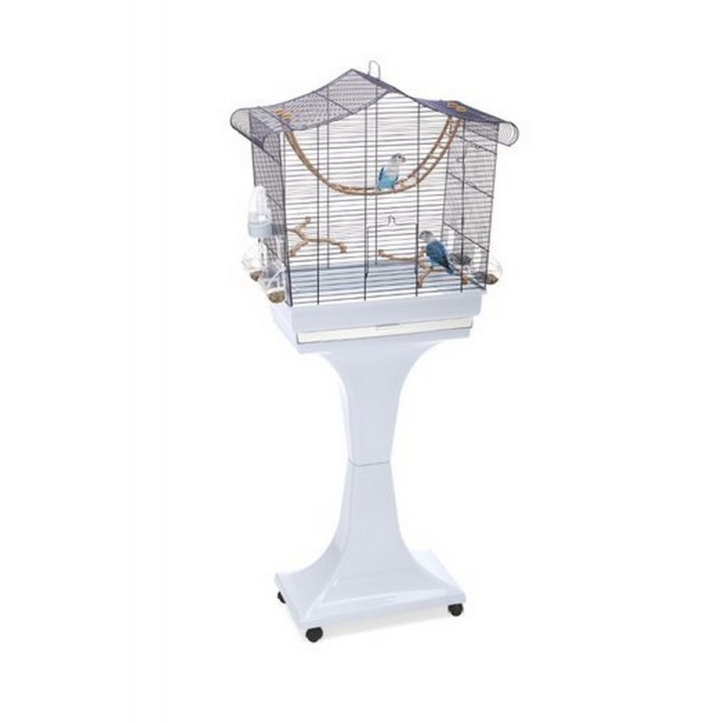 Questa raffinata gabbia Blu e Azzurra è la soluzione ideale che combina la necessità di una casetta per i vostri amici piumati a quella dei padroni nell’avere un ottimo pezzo d’arredamento. Completa di piedistallo, è accessoriata da beverini, mangiatoie e posatoi. Le ruote poste sotto la base permettono di spostarla facilmente.