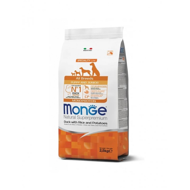 Monge All Breeds Puppy 2,5 kg Anatra con Riso e Patete Natural Superpremium
