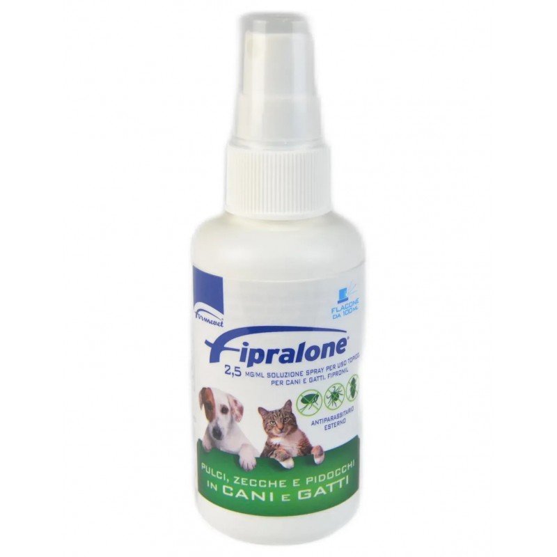 Fipralone è un antiparassitario spray per il trattamento delle infestazioni da pulci (ctenocephalides spp.) in cani e gatti. Per il trattamento delle infestazioni da zecche (ixodes ricinus, rhipicephalus sanguineus) in cani e gatti. Per il trattamento dei pidocchi pungitori del cane (trichodectes canis) e del gatto (felicola subrostratus). Il prodotto può essere utilizzato come parte del trattamento strategico per il controllo della dermatite allergica da pulci (dap). L'efficacia insetticida contro nuove infestazioni da pulci adulte persiste fino a 6 settimane nei gatti e fino a 3 mesi nei cani, in relazione alla gravità della infestazione ambientale. Il prodotto ha una persistente efficacia acaricida fino a 4 settimane contro le zecche, in relazione al livello di infestazione ambientale.