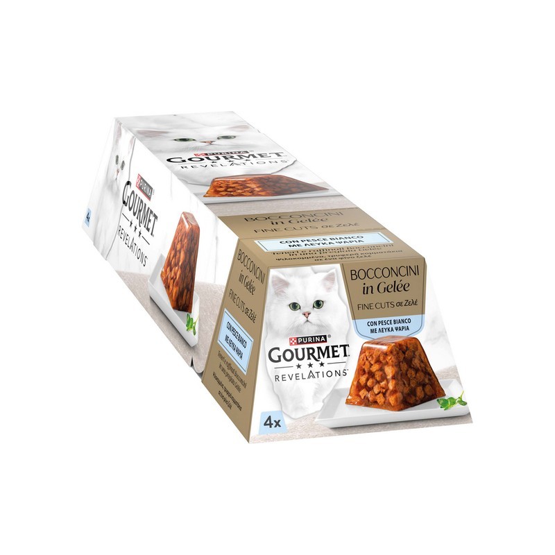 4 x Bocconcini in Gelèe con Pesce Bianco Gourmet Revelation Purina 228 gr