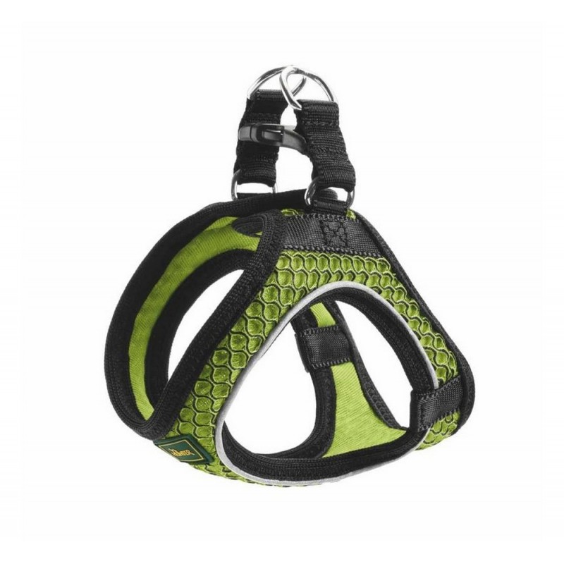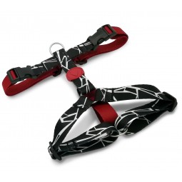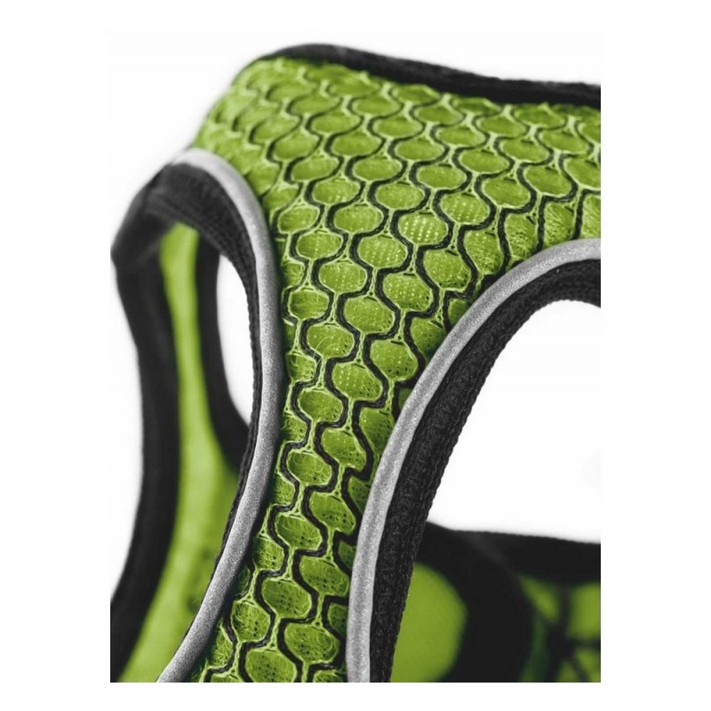 Pettorina per cani realizzata in materiale a rete leggero, con elementi riflettenti.