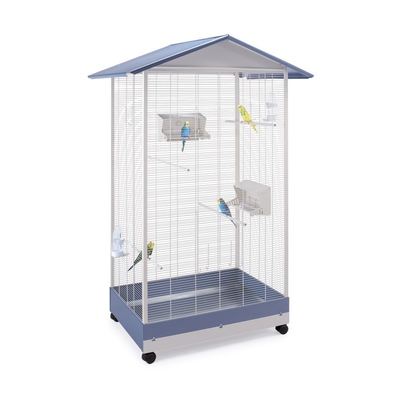 Voliera dalle dimensioni importanti per accogliere uccelli di piccola taglia come canarini, inseparabili, cardellini, diamantini. Struttura in rete metallica, fondo e tetto in metallo verniciato con un abbinamento cromatico piacevole. Nel fondo troviamo un pratico cassetto estraibile per le quotidiane operazioni di pulizia. Le tre portine laterali e frontale permettono di inserire comodamente il cibo nelle mangiatoie. Le ruote piroettanti ti consentiranno di spostare senza difficoltà nel luogo più adatto, sia interno che esterno, questa grande gabbia.