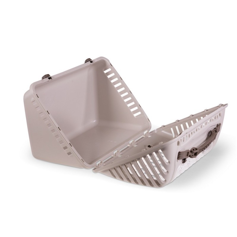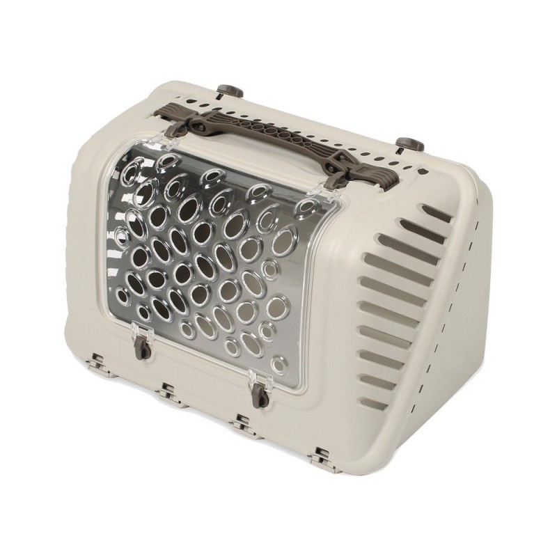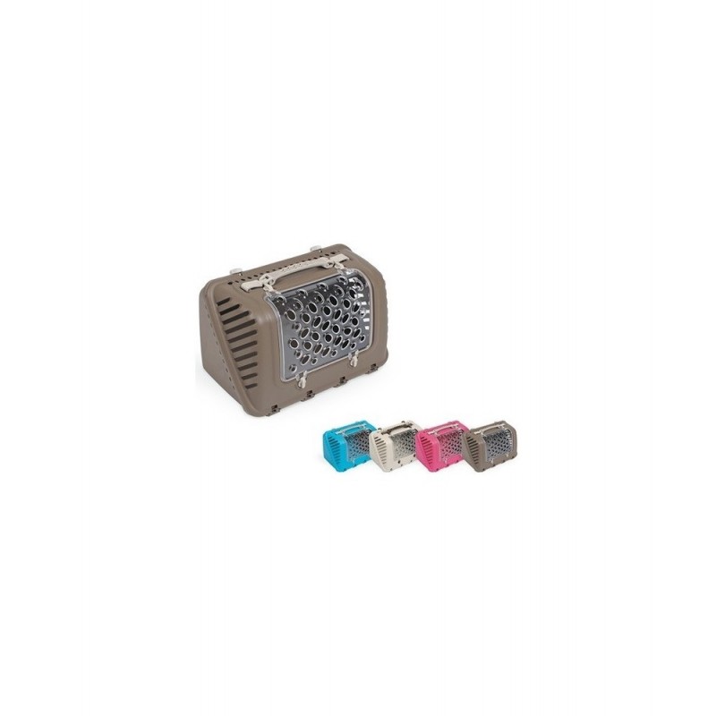 Trasportino per cani di piccola taglia e gatti, dal design originale e accattivante. Il box è costruito in plastica con fori per una perfetta areazione e una porta in plastica trasparente con comodi ganci di chiusura. Il robusto trasportino è dotato di una maniglia per un trasporto sicuro. Disponibile in 4 colori assortiti, verrà inviato in base alle disponibilità. (Per scegliere un colore contattate in privato)