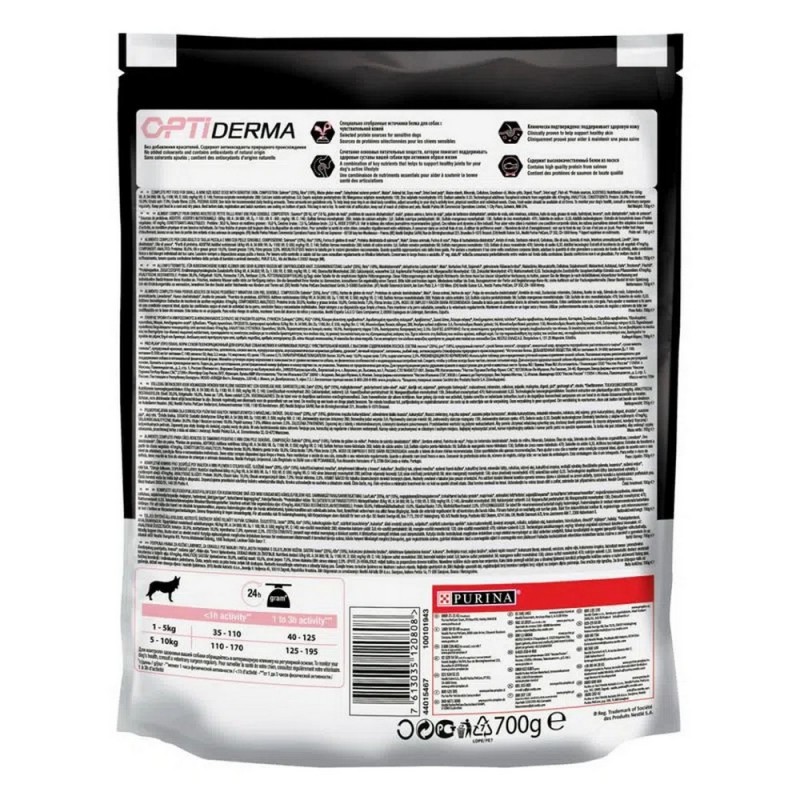 Le crocchette Purina Pro Plan Small & Mini Adult Sensitive Skin Salmone & Riso sono state appositamente sviluppate da dietetici e nutrizionisti per far fronte al fabbisogno specifico dei cani adulti di taglia piccola e nana con problemi di cute delicata. La loro formula nutrizionale clinicamente testata OPTIDERMA favorisce la salute della cute e del pelo ed è in grado di alleviare il prurito e la formazione della forfora. Le crocchette presentano un'unica fonte di proteine animali, data dal salmone, per ridurre le reazioni della pelle dovute alle intolleranze alimentari.