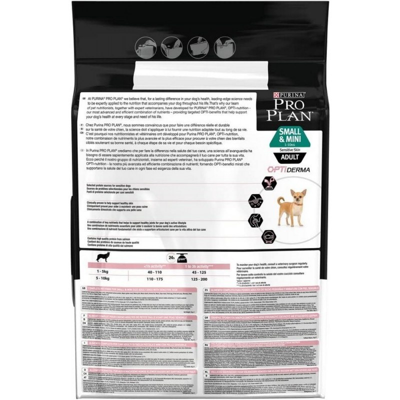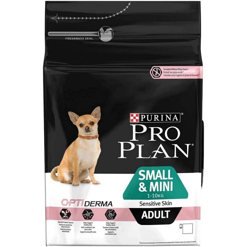Le crocchette Purina Pro Plan Small & Mini Adult Sensitive Skin Salmone & Riso sono state appositamente sviluppate da dietetici e nutrizionisti per far fronte al fabbisogno specifico dei cani adulti di taglia piccola e nana con problemi di cute delicata. La loro formula nutrizionale clinicamente testata OPTIDERMA favorisce la salute della cute e del pelo ed è in grado di alleviare il prurito e la formazione della forfora. Le crocchette presentano un'unica fonte di proteine animali, data dal salmone, per ridurre le reazioni della pelle dovute alle intolleranze alimentari.