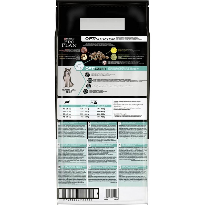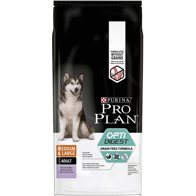 Pro Plan Medium & Large Adult OptiDigest è un alimento secco privo di cereali prodotto da Purina con il mix clinicamente testato di sostanze nutritive OPTIDIGEST. La formula che racchiude anche la manioca è stata preparata da nutrizionisti esperti e veterinari. Si tratta di un mix ideale di nutrienti e micronutrienti, di cui i cani adulti di razze di taglia media e grande con apparato gastrointestinale delicato necessitano per la loro salute e forma fisica.