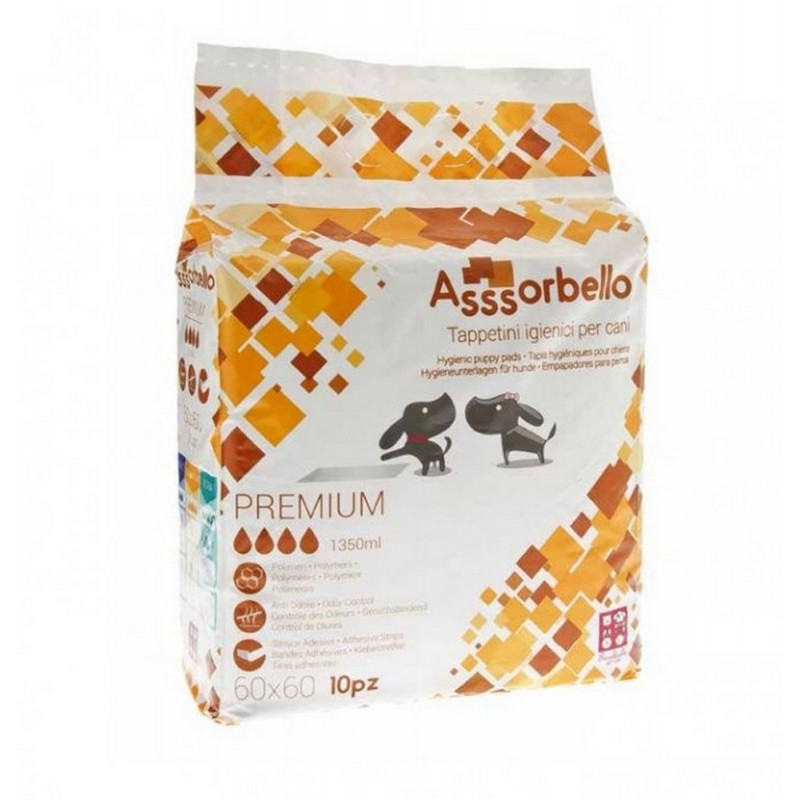 Tappetino igienico composto da un primo strato in tessuto non tessuto antistrappo. Strato in cellulosa, polimeri super assorbenti e antibatterica e con doppio rivestimento rinforzato per bloccare i liquidi all'interno. Il tessuto superiore garantisce l'asciutto sulla superficie. Massima stabilità con le strisce adesive antiscivolo.