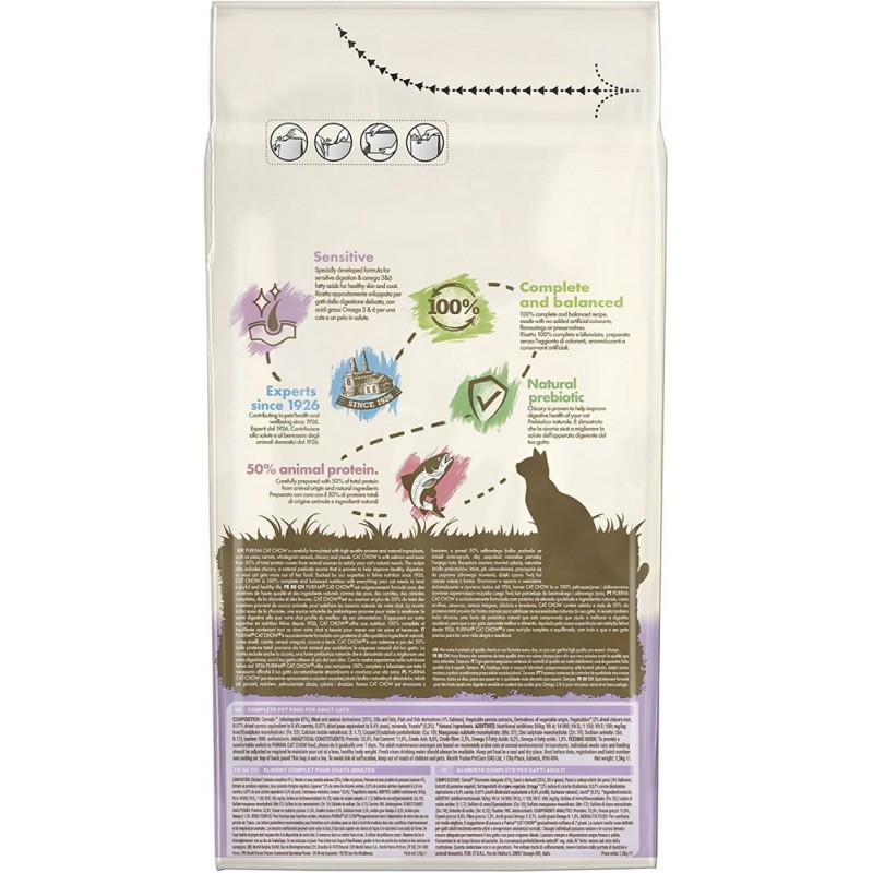 Cat Chow Adult Sensitive è un alimento per gatti ricco in salmone e contiene tutti i nutrienti essenziali per il benessere generale del tuo gatto, incluse la vitamina E per supportare le difese naturali e le vitamine del gruppo B per aiutare il gatto ad utilizzare l’energia efficientemente. Contiene acidi grassi Omega 3 e Omega 6 che supportano una pelle sana e un pelo lucido, e Naturium, e una combinazione specifica di fibre da fonti naturali per supportare una sana digestione.