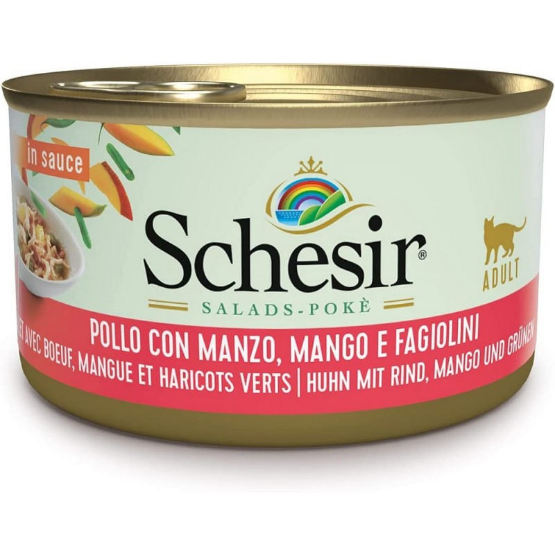 Schesir Cat Salads Pokè Pollo con Manzo Mango e Fagiolini in Salsa Alimento Umido per Gatti Adulti 85 Gr