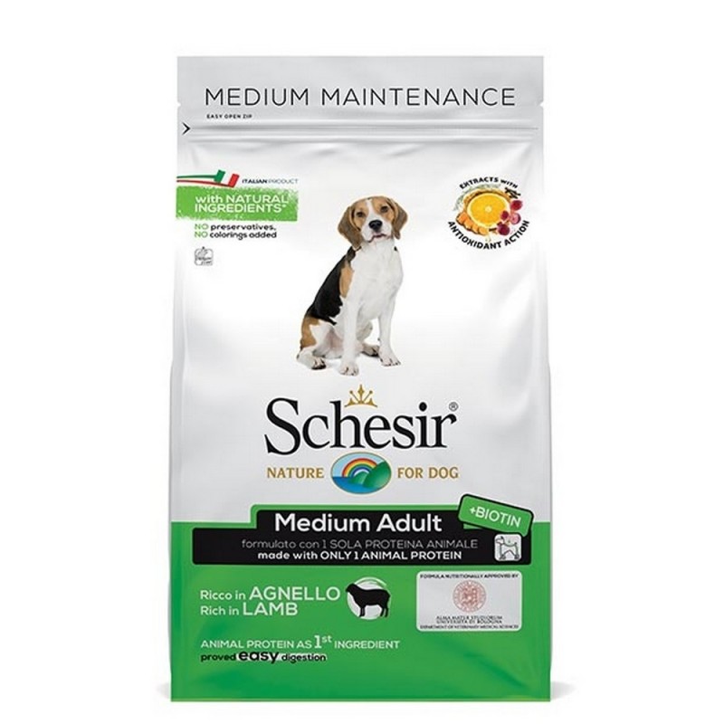 Schesir Dry Line for Medium Dogs ricco di agnello è un alimento secco completo che contiene un’unica fonte proteica (agnello) ed è ricco di ingredienti naturali con aggiunta di vitamine e minerali, per rispondere alle esigenze nutrizionali dei cani adulti di taglia media.