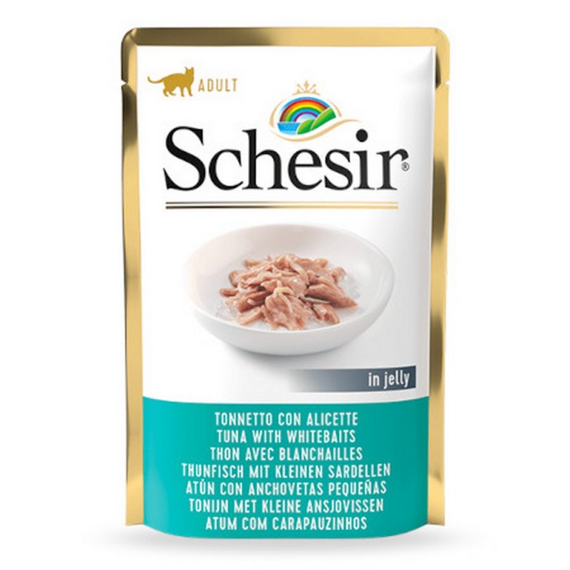Alimento umido per gatti adulti. La ricetta Schesir è a base di veri filetti di delizioso tonnetto, preparati in gelatina, per soddisfare i gusti dei gatti che prediligono il sapore del mare, abbinato a una consistenza più compatta nella ciotola.
