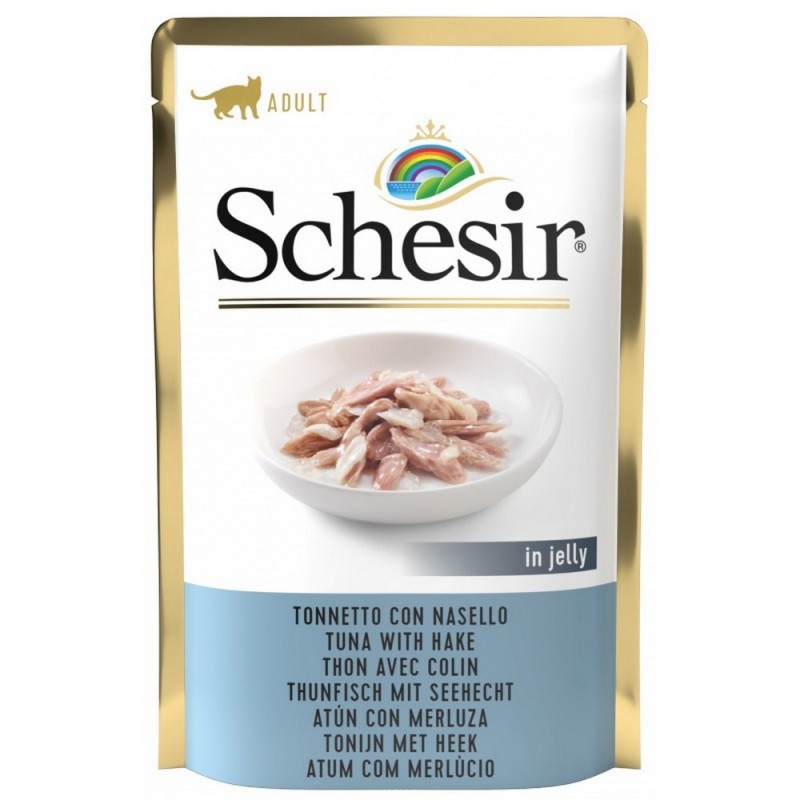 Alimento umido per gatti adulti. La ricetta Schesir è a base di veri filetti di delizioso tonnetto, preparati in gelatina, per soddisfare i gusti dei gatti che prediligono il sapore del mare, abbinato a una consistenza più compatta nella ciotola.