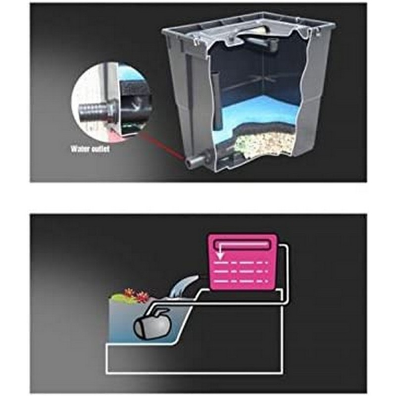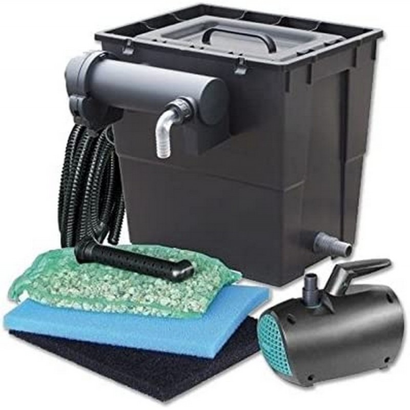Il Pratico Advance 7000 è un filtro completo di lampada UV-C a lunga durata e pompa per acque sporche progettata con motore a basso consumo. La sua ricca dotazione di massa filtrante comprende: un'ampia spugna filtrante, una spugna al carbone e grande quantità di granulato argilloso ad alta porosità per il migliore filtraggio biologico.
