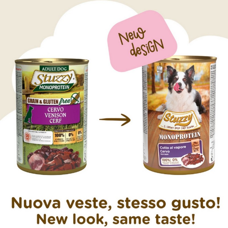 Una sola proteina di origine animale non significa meno gusto per il tuo cane! Stuzzy Monoprotein Cervo è un alimento completo e stuzzicante, cotto al vapore per nutrire il tuo campione con tanta naturalità.