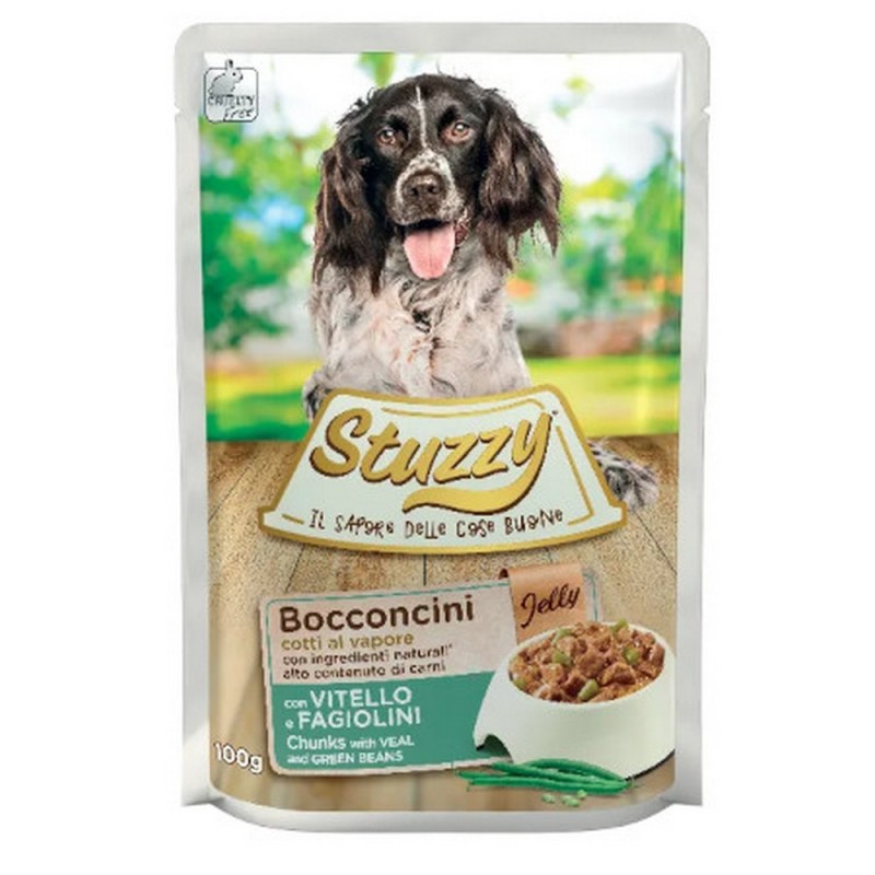 Bustina Stuzzy Dog Bocconcini Cotti a Vapore Vitello e Fagiolini in Jelly 100 Gr