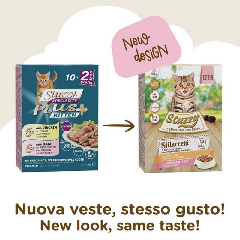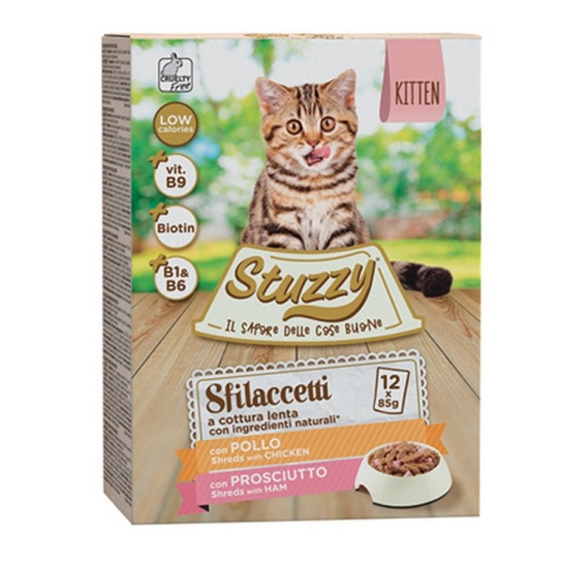Multipack Sfilaccetti Stuzzy Cat Kitten con Pollo e Prosciutto 12 Bustine da 85 Gr